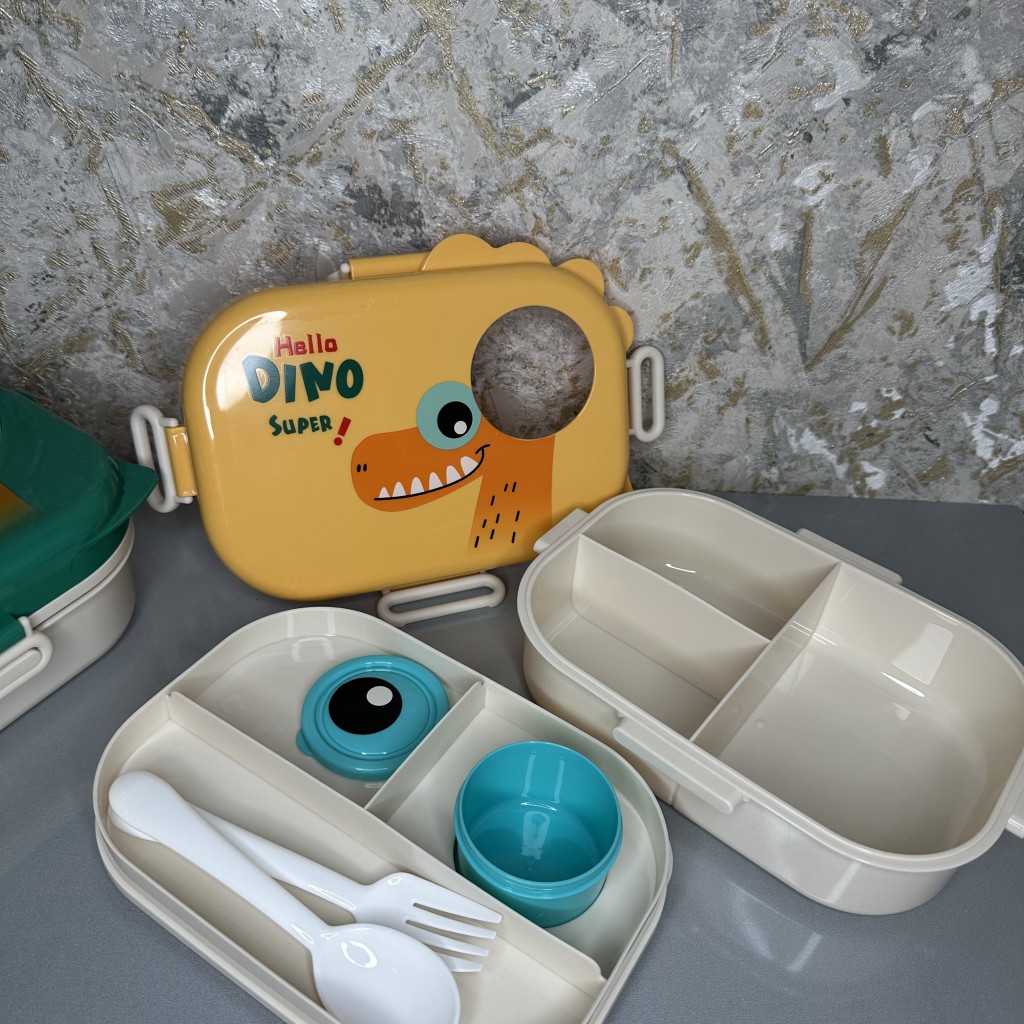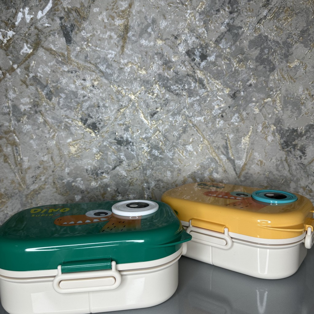 ظرف غذا دو طبقه دایناسور 3 قسمته دارای سس